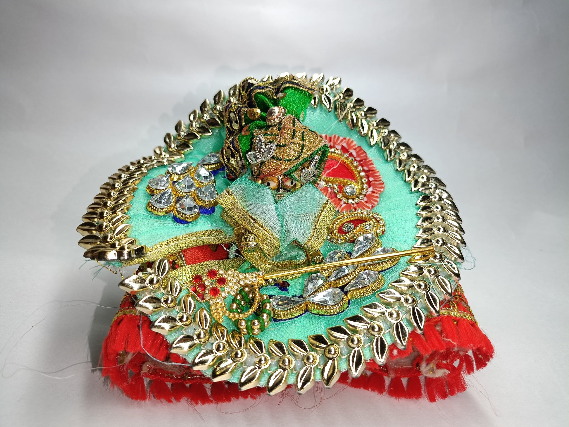 💚👑 Laddu Gopal Ji Designer Shringar Dress | Sea Green Stone Work | Mukut & Bansuri Set | Size 2 💫🎐